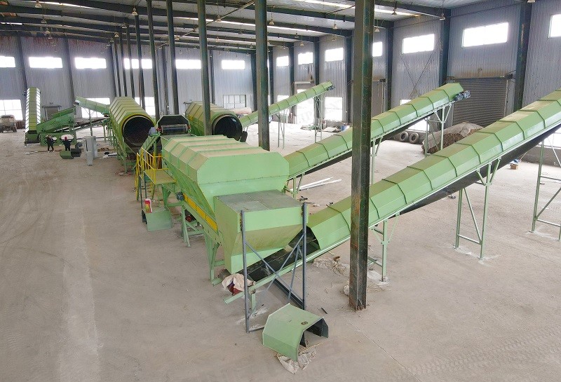 预处理后的物料进入核心筛分环节,选用无轴滚筒筛或碟盘筛实现精准分级,这是分离腐殖土、骨料、可燃物的关键步骤。无轴滚筒筛摒弃中心转轴设计,彻底解决塑料、织物缠绕卡顿问题,采用分段多层耐磨聚氨酯筛网,前段打散团块,后段分级出料,将物料分为三类:小于20mm的细料(腐殖土、细砂)、20-80mm的中料(碎砖石、玻璃、硬质塑料)、大于80mm的粗料(大块塑料、橡胶、织物),筛分效率稳定在85%以上。碟盘筛作为新型替代设备,通过多组旋转碟盘滚动筛分,处理量较传统滚筒筛提升3倍,对湿黏团块、异形物料适应性极强,可灵活调整间隙实现精准分级,兼顾预处理与精细筛分双重功能。